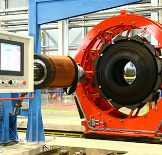 万达宝通第一条18.00R33深花纹全钢工程胎成功下线,标志着10万套/年全钢工程胎项目进入产品试制阶段